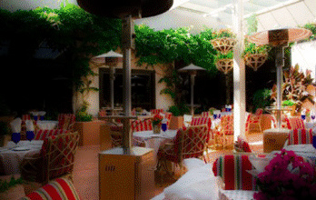 Deciding to check out the restaurant again, she made her way up the hill and entered the dining room through the terrace doors.